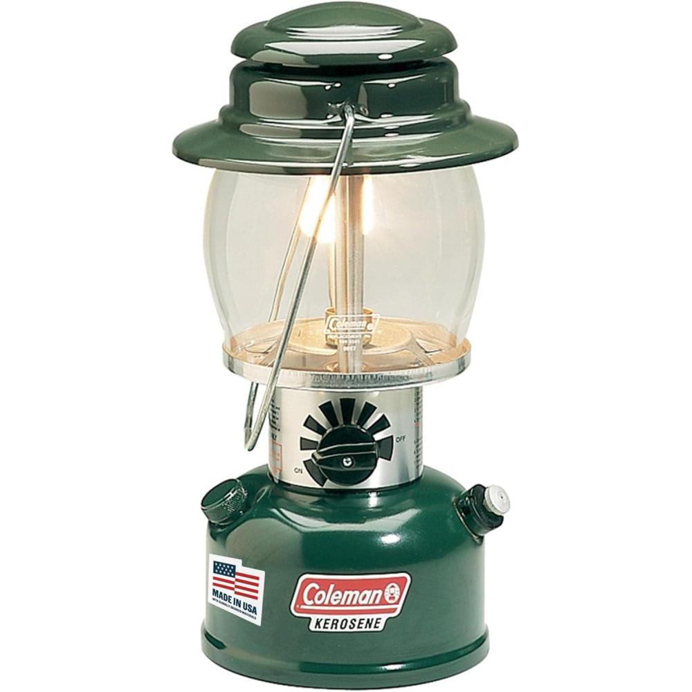Illuminate your outdoor adventures with the Coleman One-Mantle Kerosene Lantern. This durable camping lantern features a one-mantle design that casts up to 700 lumens of high-intensity light. You can light the lantern with a quick match strike and dial in the desired brightness level with the adjustable dimmer knob. The high-temperature globe resists cracking and is protected by built-in spring clips, and the porcelain-coated ventilator helps resist corrosion and rust. A bail handle makes it easy to carry or hang the lantern, and the fuel tank provides a steady base when the lantern is placed on a table or other surface. This outdoor lantern lasts up to 8. 5 hours on high with 2 pints of kerosene (sold separately). It comes with a pre-installed #11 mantle and a plastic bottle to help fill the pre-heater.