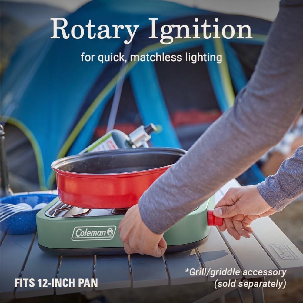 Coleman Cascade 18 1-Burner Camping Stove, Portable Cooktop with 8000 BTUs & Matchless Lighting, Fits 12-Inch Pan, Great for Outdoor Cooking, Camping, Tailgating, Grilling, BBQs, & More