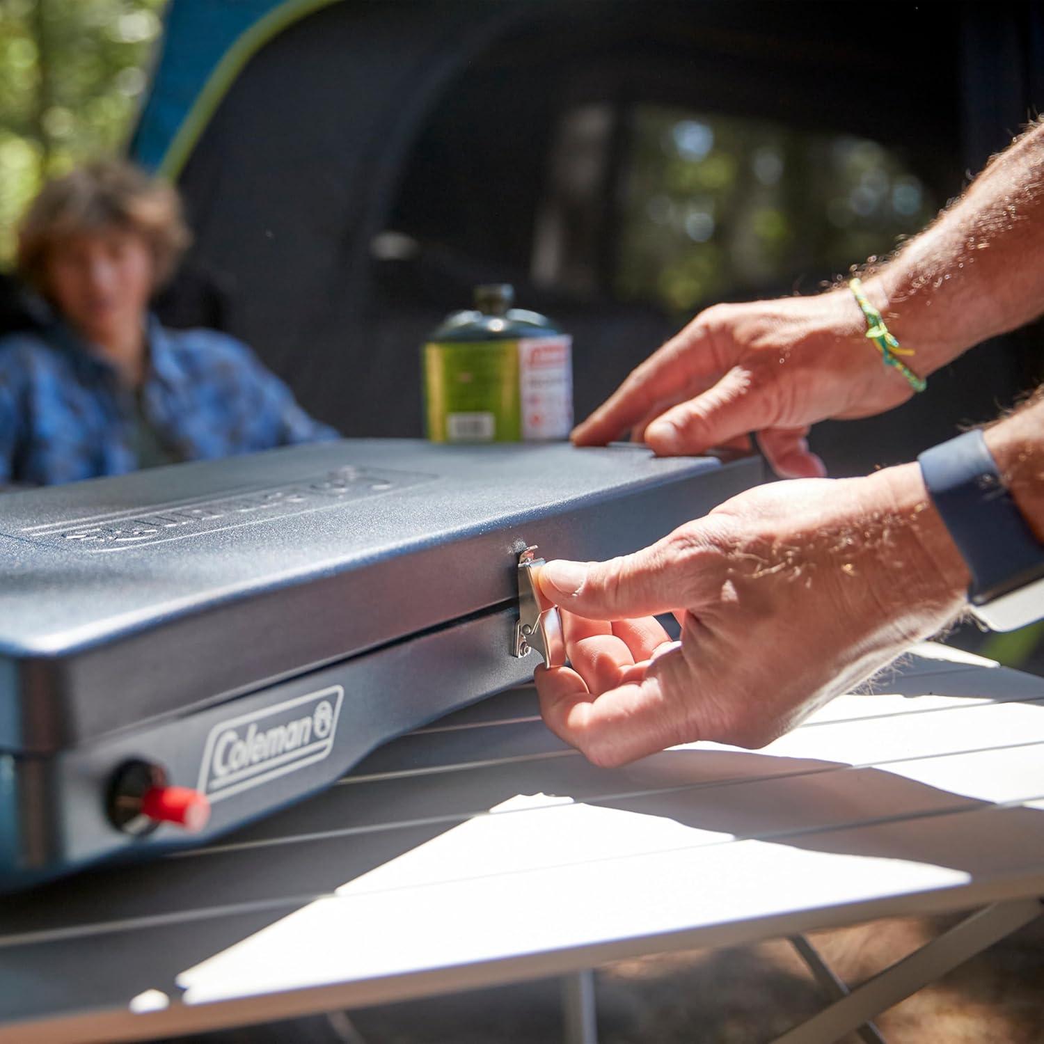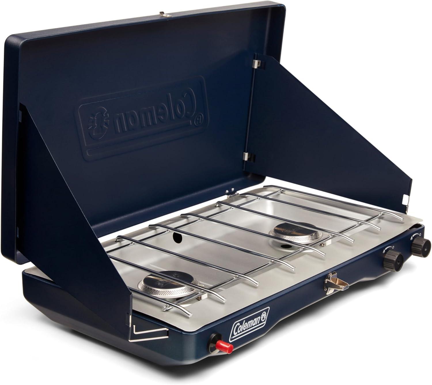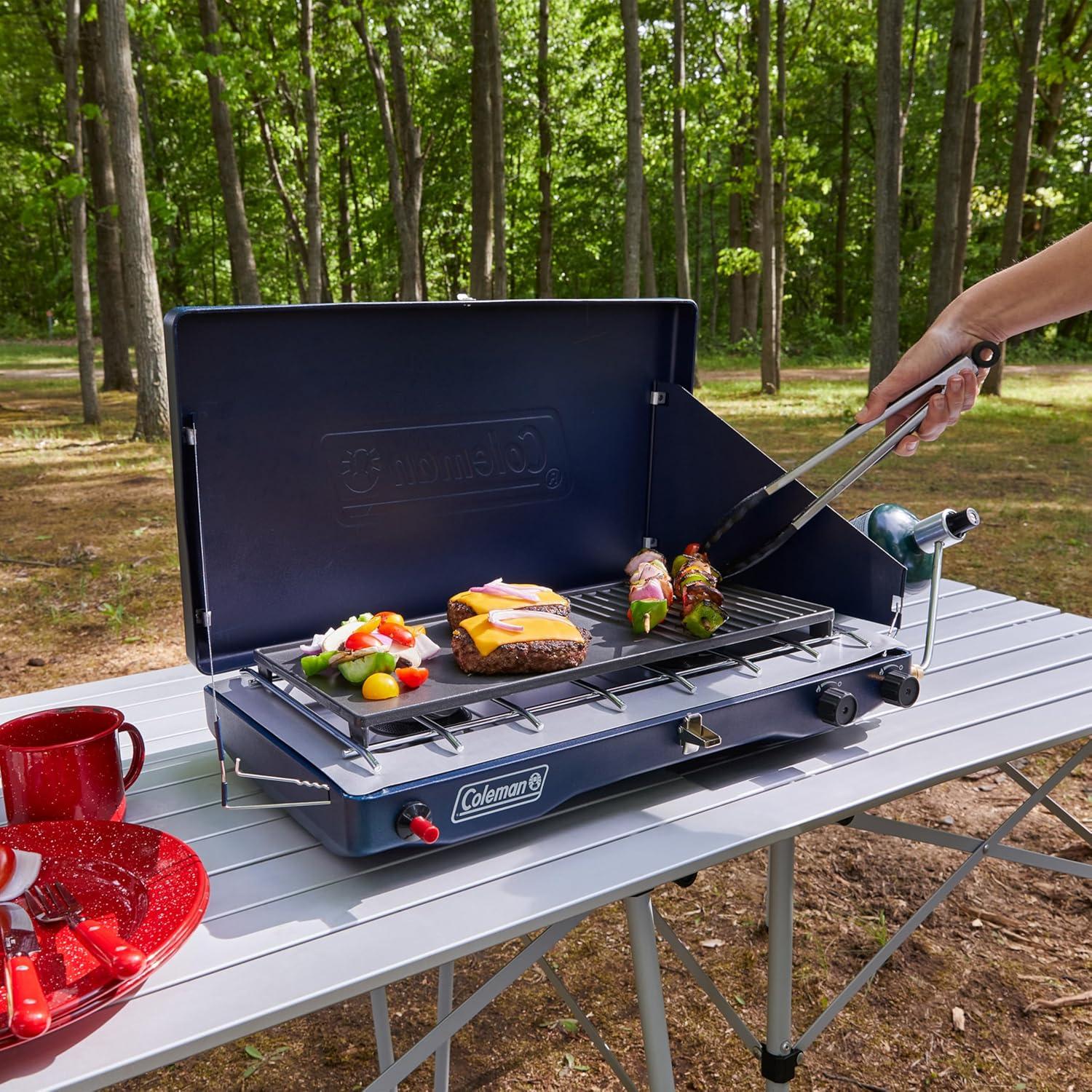 Hit the road with a Coleman Classic 3-in-1 Camping Stove which makes it easy to cook great meals outdoors. Its cast-iron grill and griddle accessory stores under the lid so the stove is easy to move, and its removable chrome-plated grate makes cleanup quick. Because we know cooking out in the elements can be rough, this stove has two guards to shield the burners and flame from wind, as well a push-button Instastart ignition for automatic, matchless lighting. The best parts? This stove has 20,000 BTUs of cooking power and comes with a removable cast-iron grill and griddle accessory so you can whip up a variety of good food that'll seriously hit the spot.