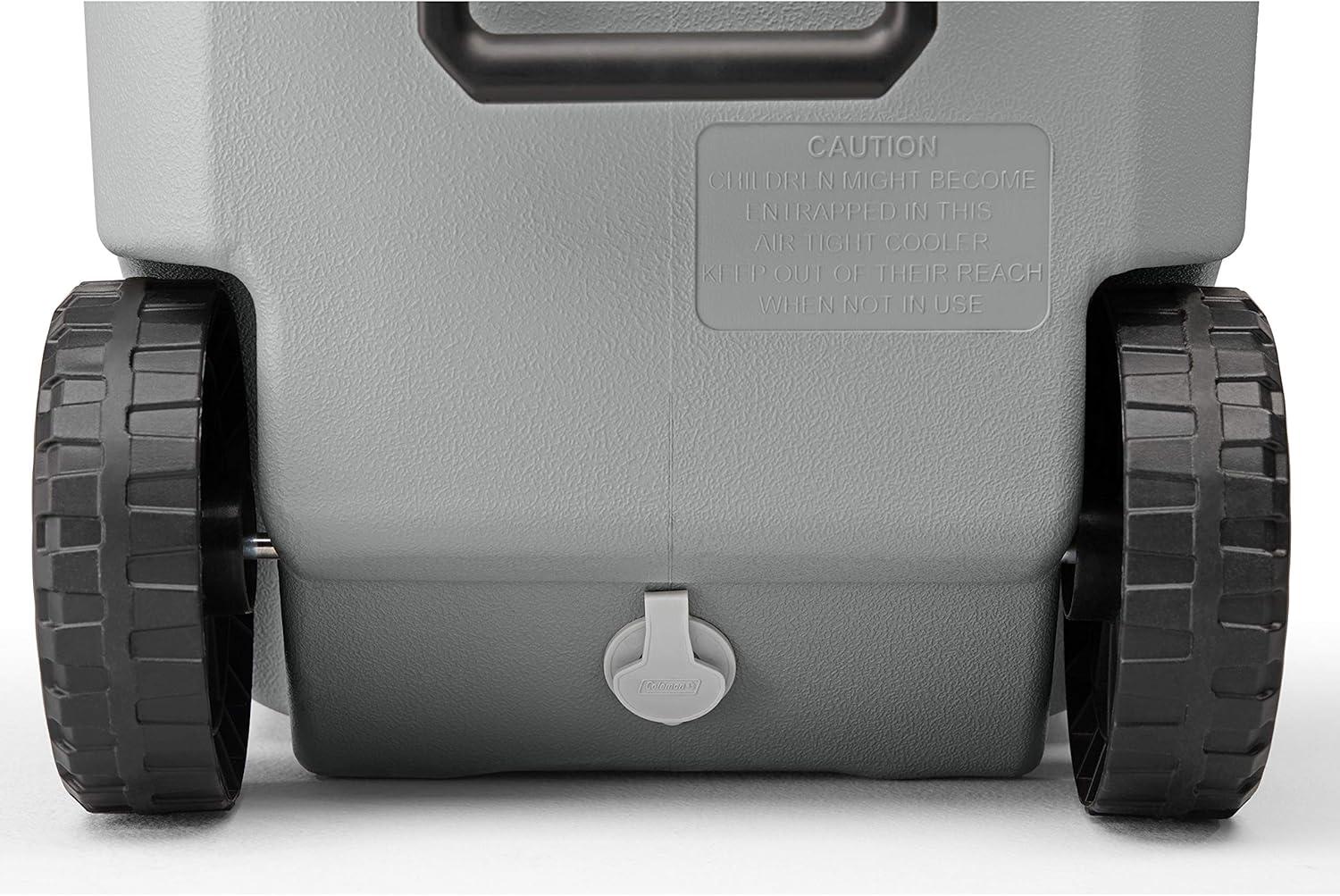 imageColeman Classic Series Insulated Portable Rolling Cooler with Wheels LeakResistant Outdoor Hard Cooler Keeps Ice up to 5 Days 100QuartRock Grey