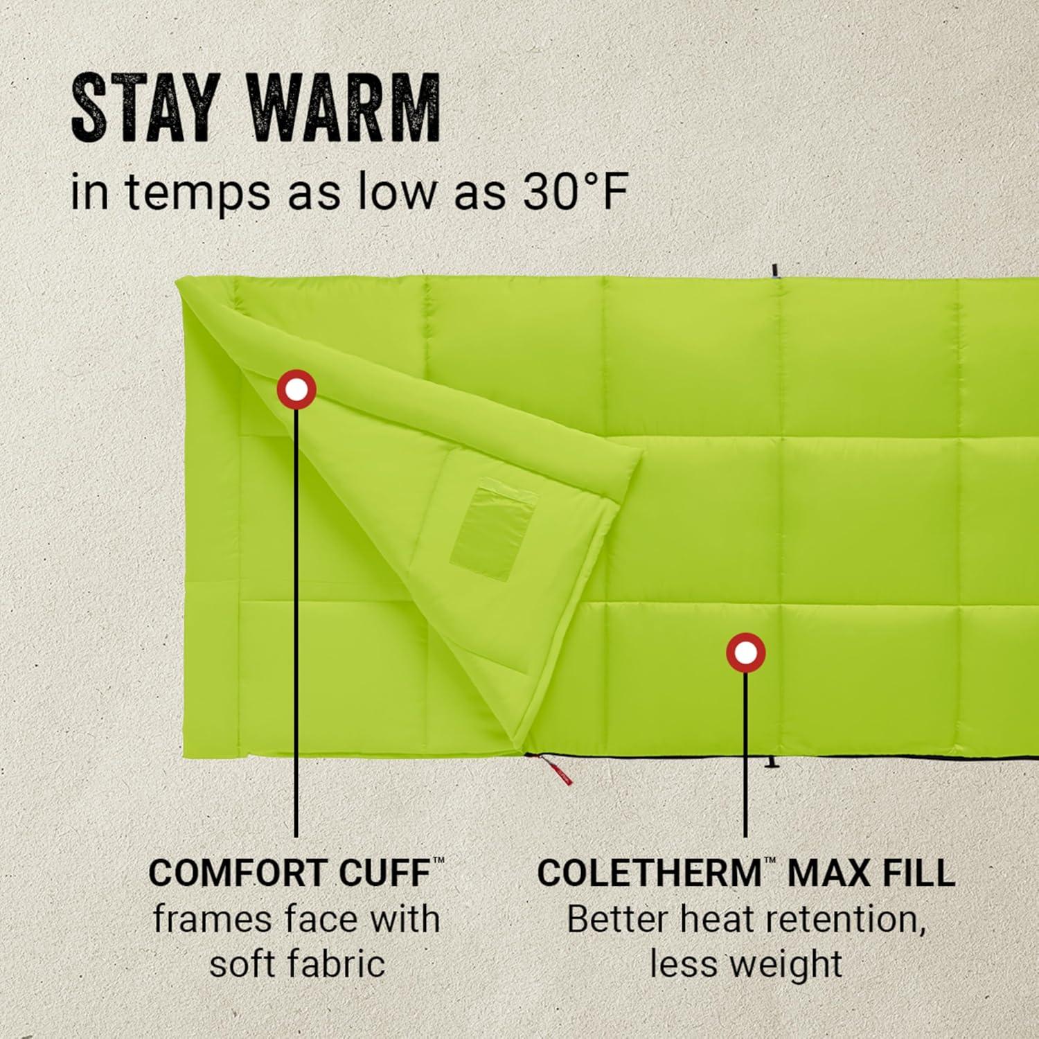 Coletherm Max premium and lightweight fill provides better heat retention with less weight and allows bag to pack easily into stuff sack