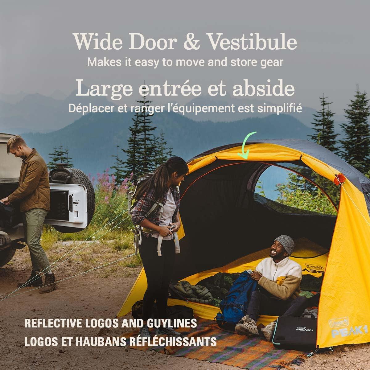 Elevate your next backpacking trip with the Coleman PEAK1 Collection—premium gear designed to inspire and built for those making the most of the outside. Influenced by up-mountain design, the Coleman PEAK1 1-Person Backpacking Tent is a must for backpackers and serious campers. Its WeatherTec Plus system helps to keep water out while strong aluminum frame can withstand winds up to 45 mph—perfect for handling whatever Mother Nature has planned. Calm night? The star view window unzips from the inside for extra airflow and the ultimate view of the night sky. Its wide doorway and vestibule lets you move and store gear inside with ease, and, for an extra layer of protection, it comes with a matching footprint that'll keep it in great condition for years to come.