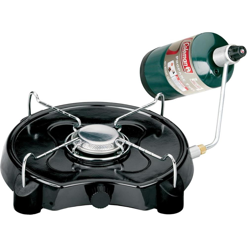 The Coleman 5453A700 Powerpack Single-burner Low-profile Propane Stove is pretty much as easy as it gets. The Powerpack's fully adjustable flame lets you boil water or simmer chili, while the PerfectFlow system of pressure-regulated propane provides consistent cooking performance (without flaring or flickering) by producing a steady fuel stream, even in cold weather, high altitudes, or when fuel is low.