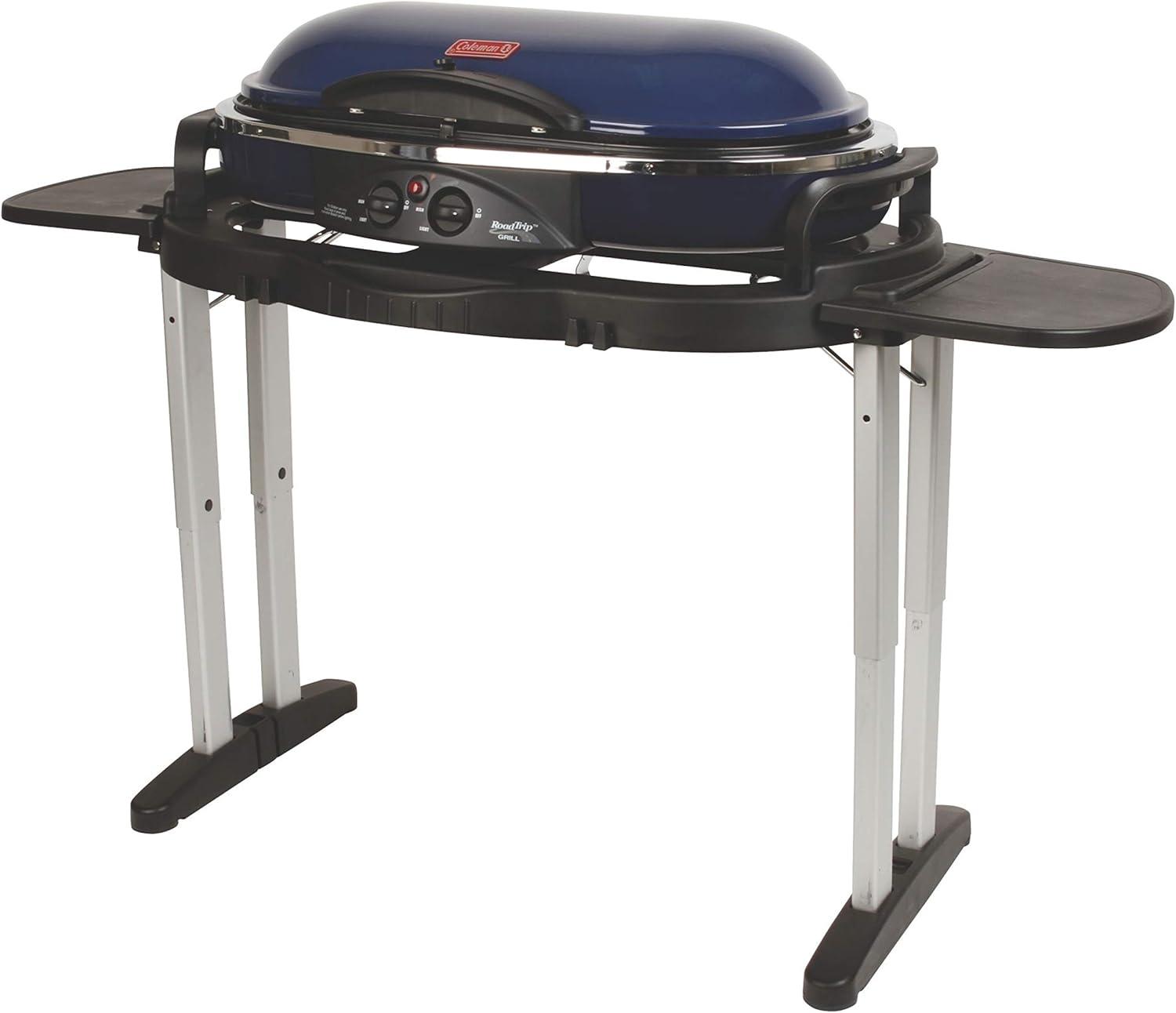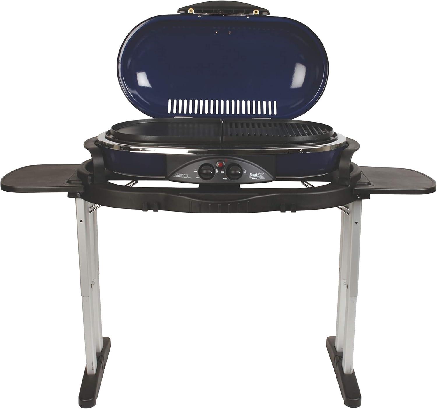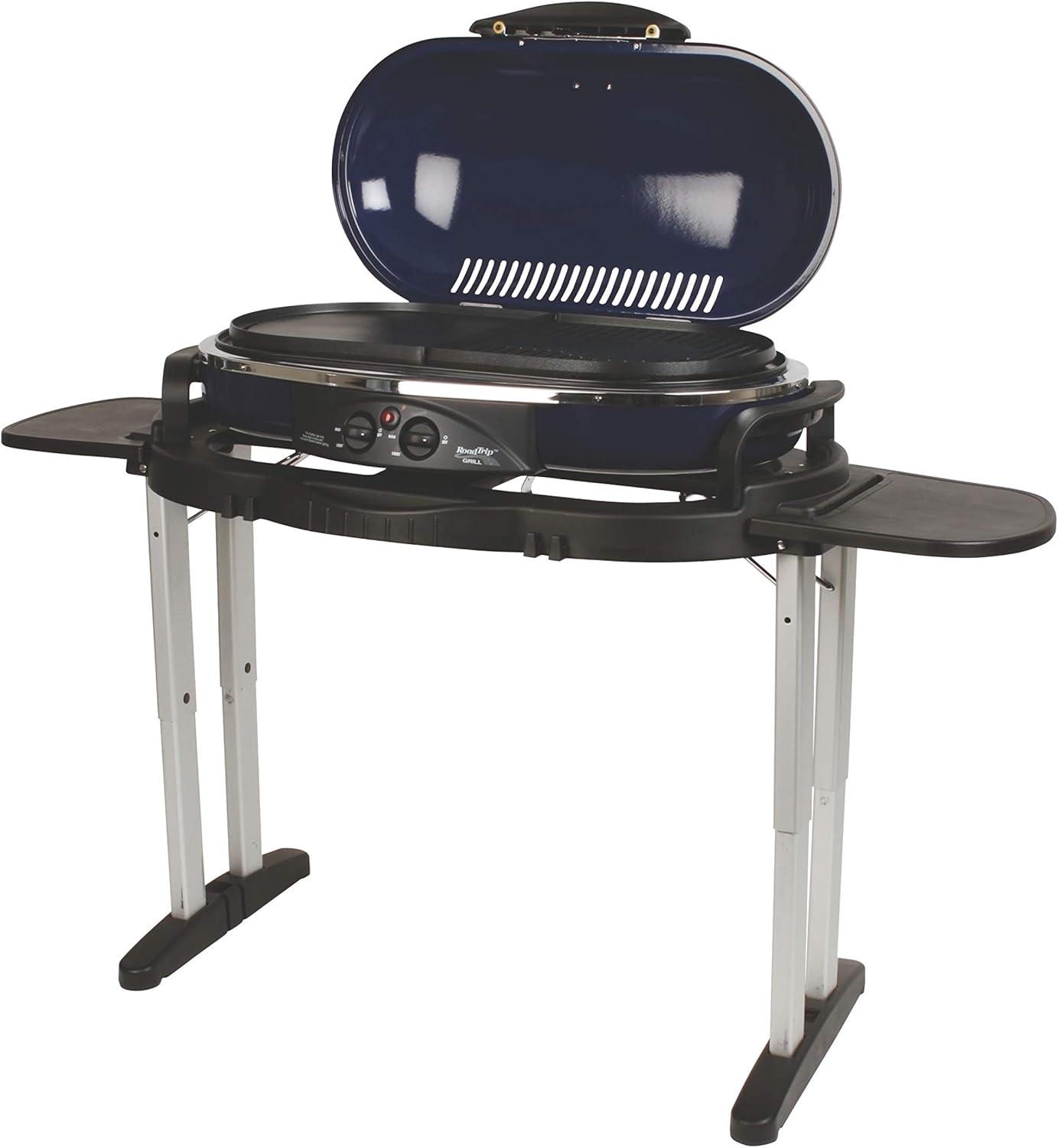 Show off your grilling skills on camping trips, picnics, and at tailgating parties with the Coleman RoadTrip LX Propane Grill. Two individually adjustable dual burners blast out 20,000 BTUs of heat, giving you enough cooking power to prepare a wide range of foods, from grilled veggies to thick slabs of steak. The Swaptop interchangeable design allows you to switch out the grill grates for a griddle top or stove grate (both sold separately), while the InstaStart ignition allows you to light the burners by simply pushing a button. This portable grill also excels in chilly conditions thanks to PerfectFlow technology, which helps ensure steady heat output. With its 285-square-inch cooktop, this outdoor BBQ grill offers a generous cooking surface area. Side tables and tool hooks provide easy access to ingredients and utensils. Its collapsible stand folds for compact storage, and the camping grill can also be used without its stand on a tabletop.