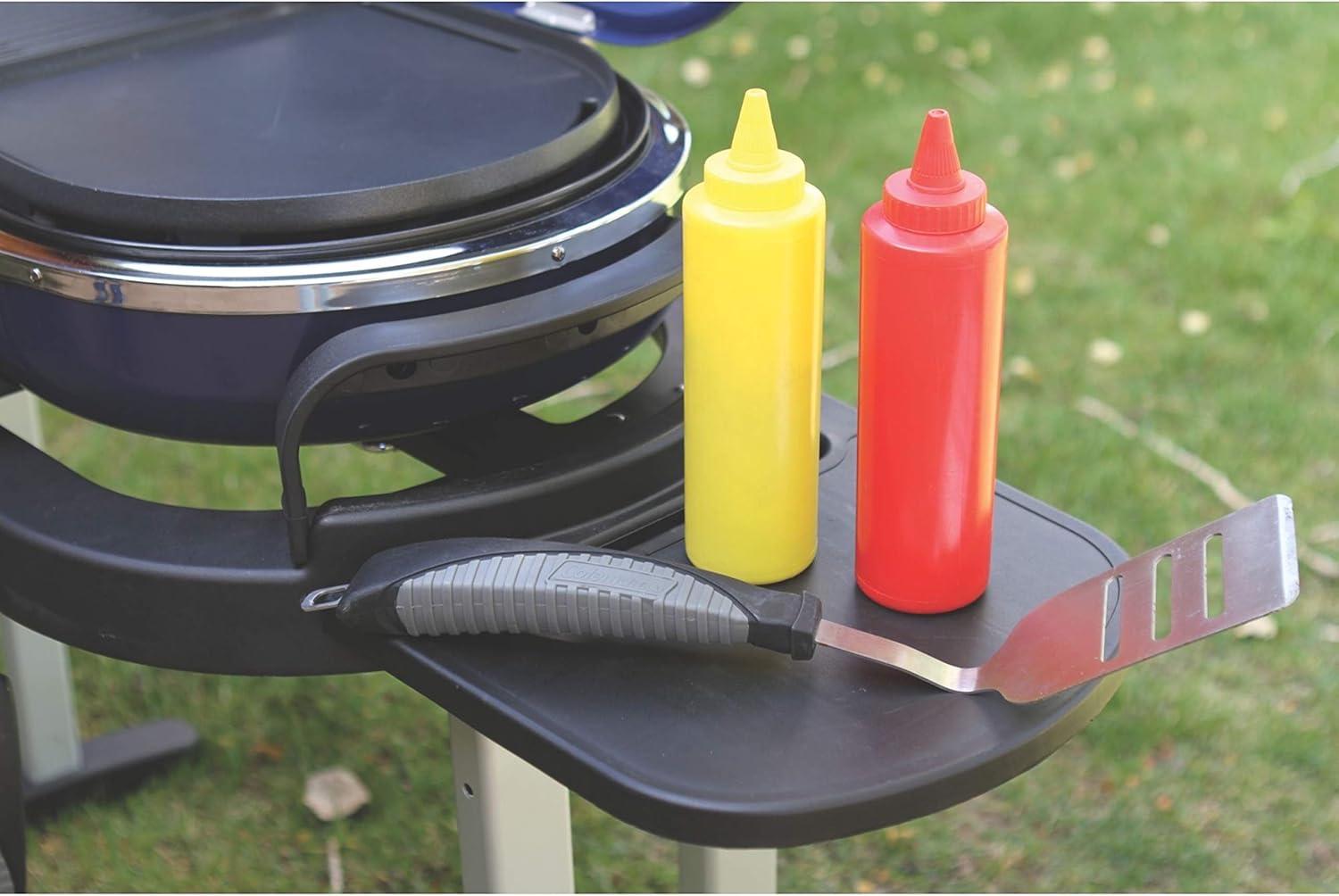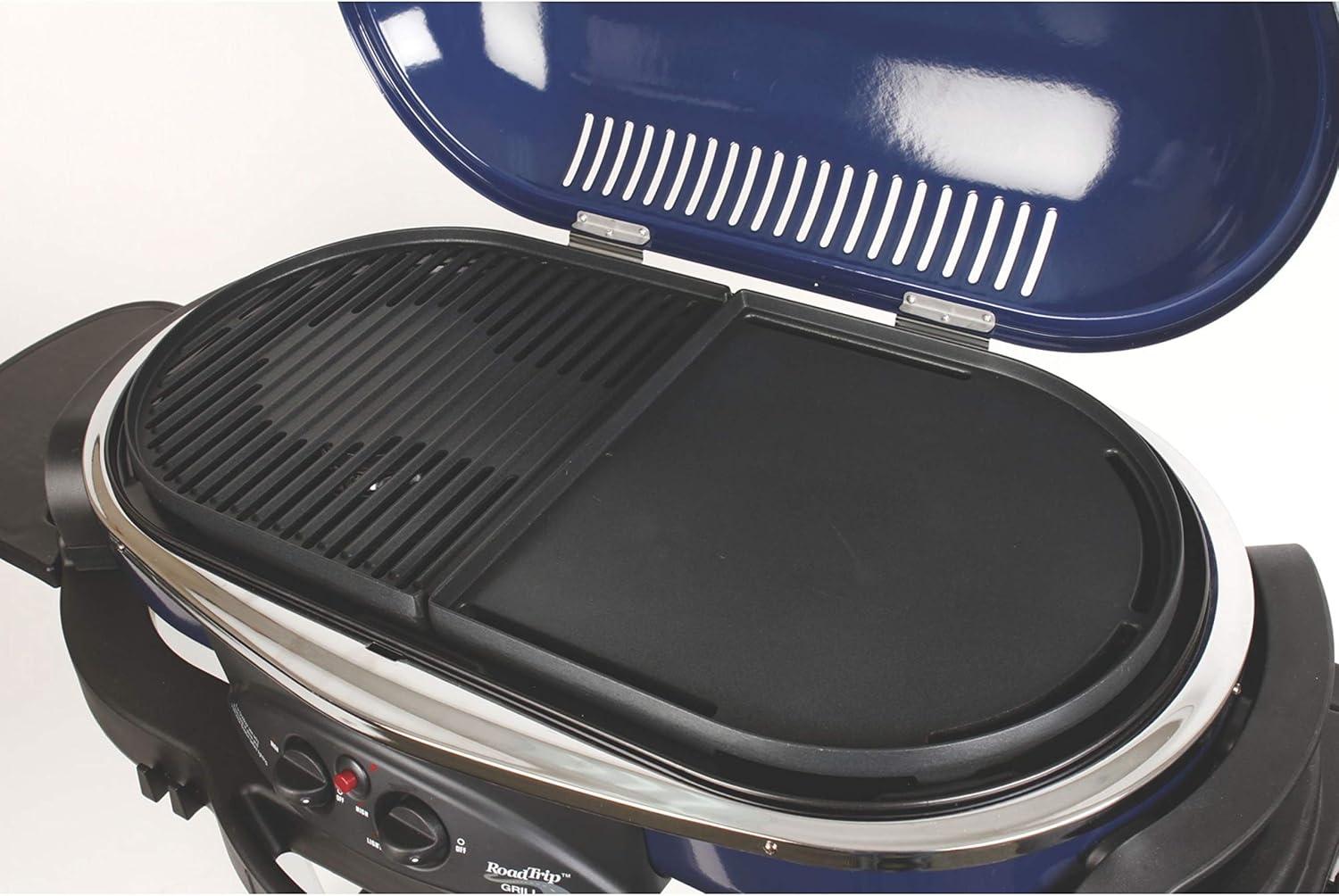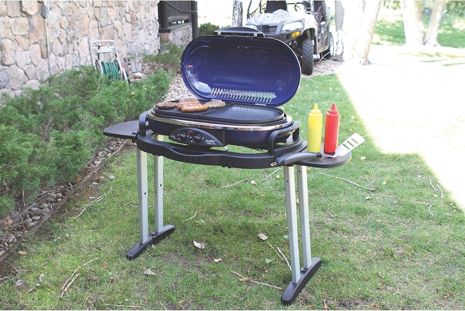 Show off your grilling skills on camping trips, picnics, and at tailgating parties with the Coleman RoadTrip LX Propane Grill. Two individually adjustable dual burners blast out 20,000 BTUs of heat, giving you enough cooking power to prepare a wide range of foods, from grilled veggies to thick slabs of steak. The Swaptop interchangeable design allows you to switch out the grill grates for a griddle top or stove grate (both sold separately), while the InstaStart ignition allows you to light the burners by simply pushing a button. This portable grill also excels in chilly conditions thanks to PerfectFlow technology, which helps ensure steady heat output. With its 285-square-inch cooktop, this outdoor BBQ grill offers a generous cooking surface area. Side tables and tool hooks provide easy access to ingredients and utensils. Its collapsible stand folds for compact storage, and the camping grill can also be used without its stand on a tabletop.