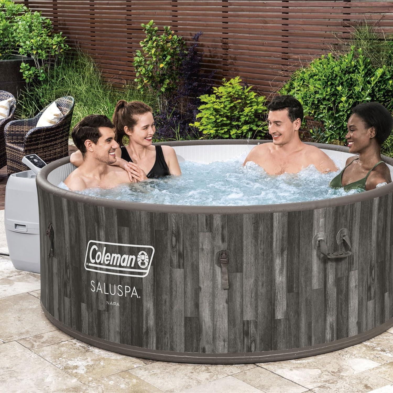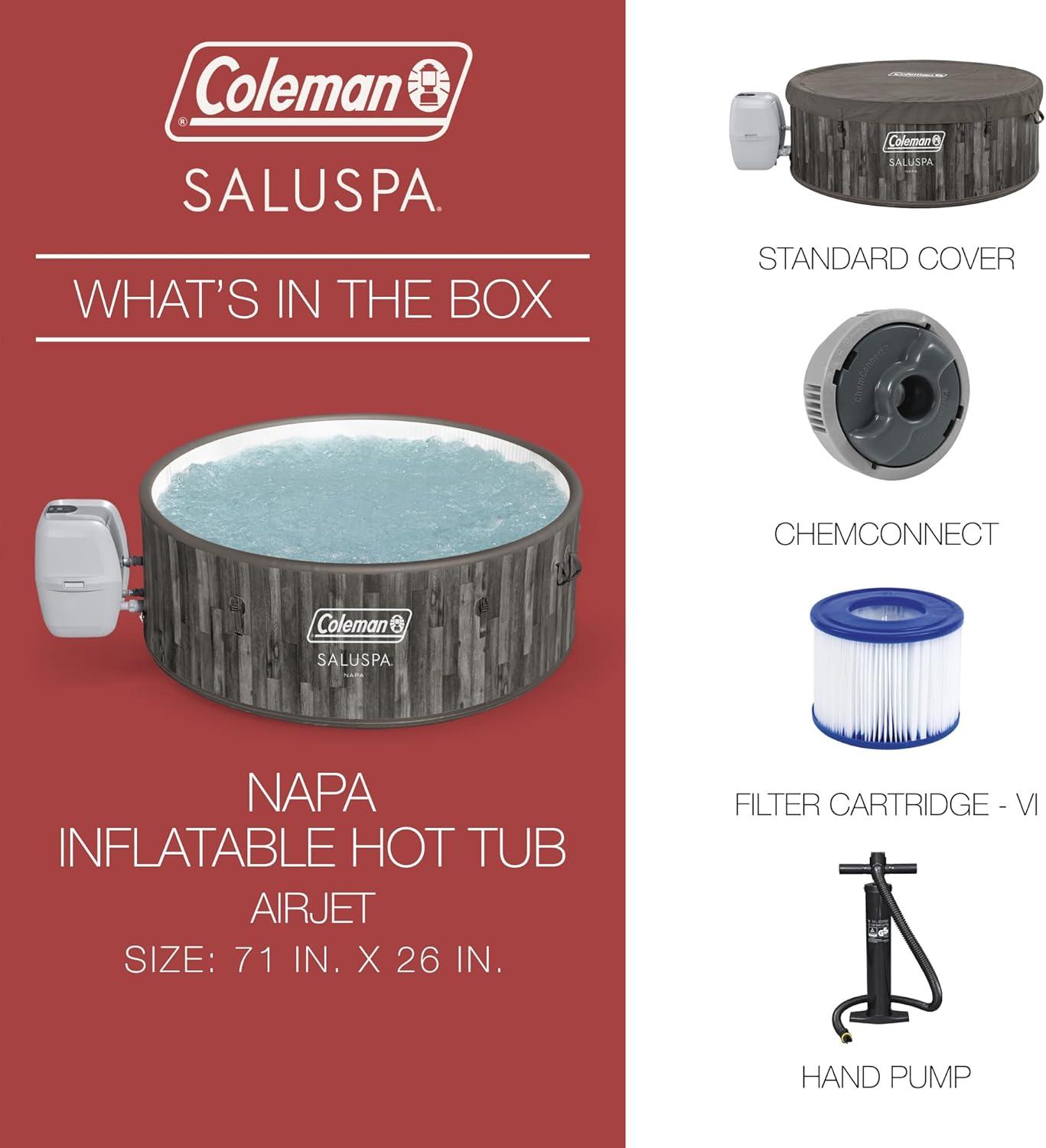 Coleman SaluSpa Napa AirJet 2 to 7 Person Inflatable Hot Tub Round Portable Outdoor Spa with 180 Soothing Jets with Cover, Gray(Standard)