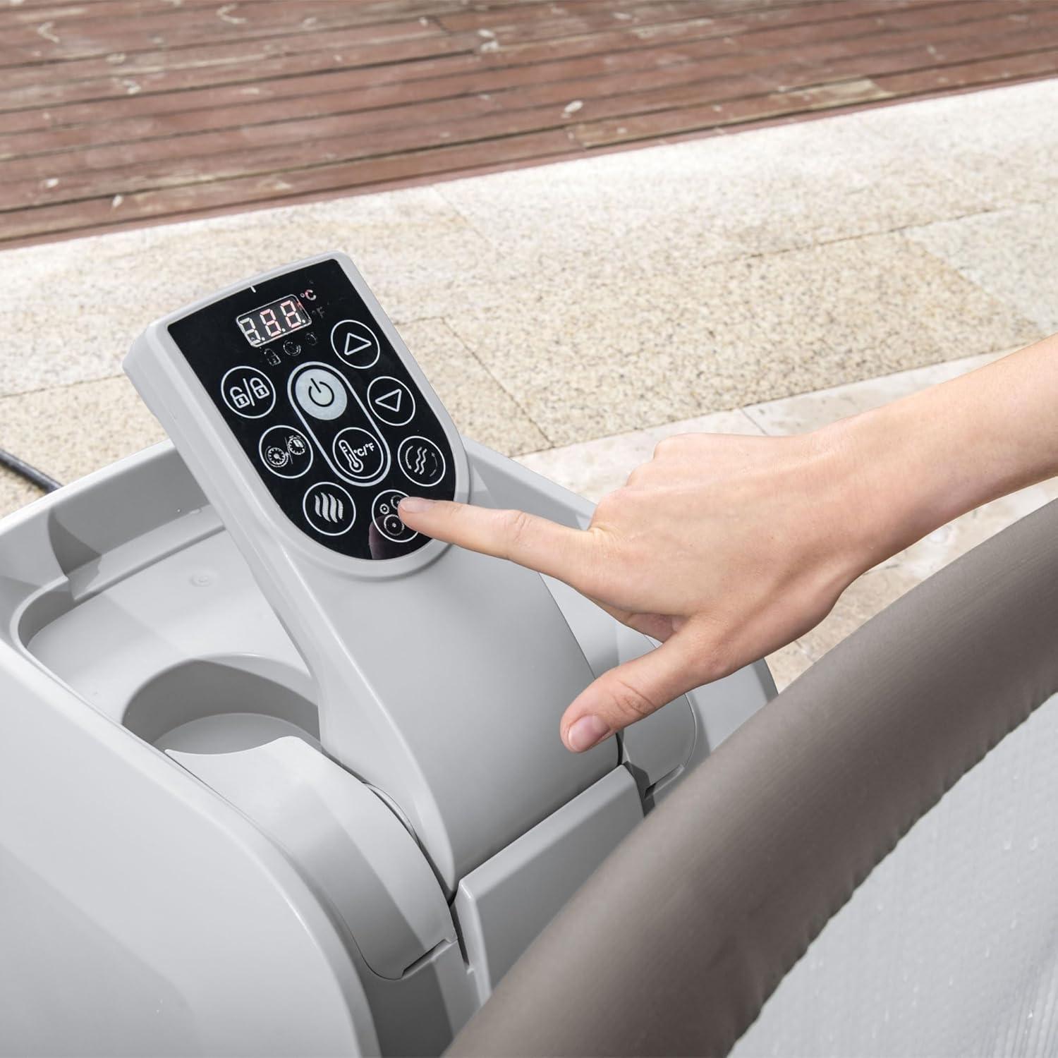 INCLUDES: Equipped with a pump that quickly inflates the spa, heats it up, runs filtration, and controls the massage system for an easy and convenient spa that includes a cover, pump, chemical floater, 2 filter cartridges (VI), repair patch, and 6-foot-long cord