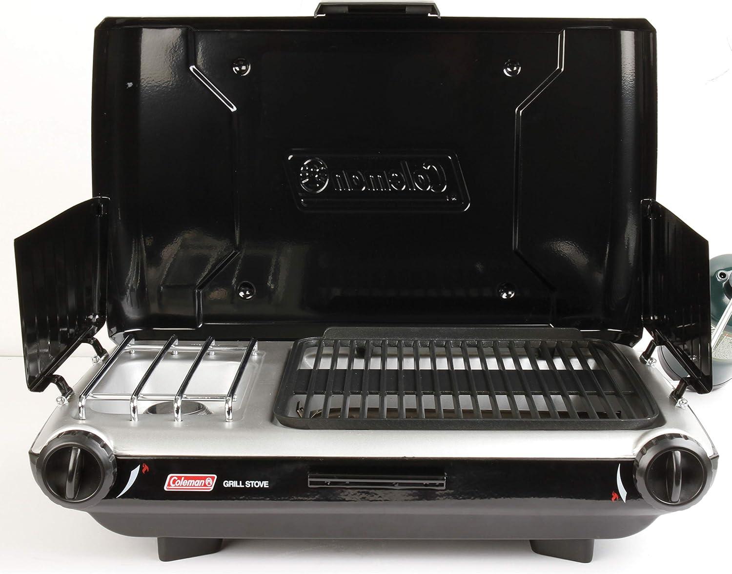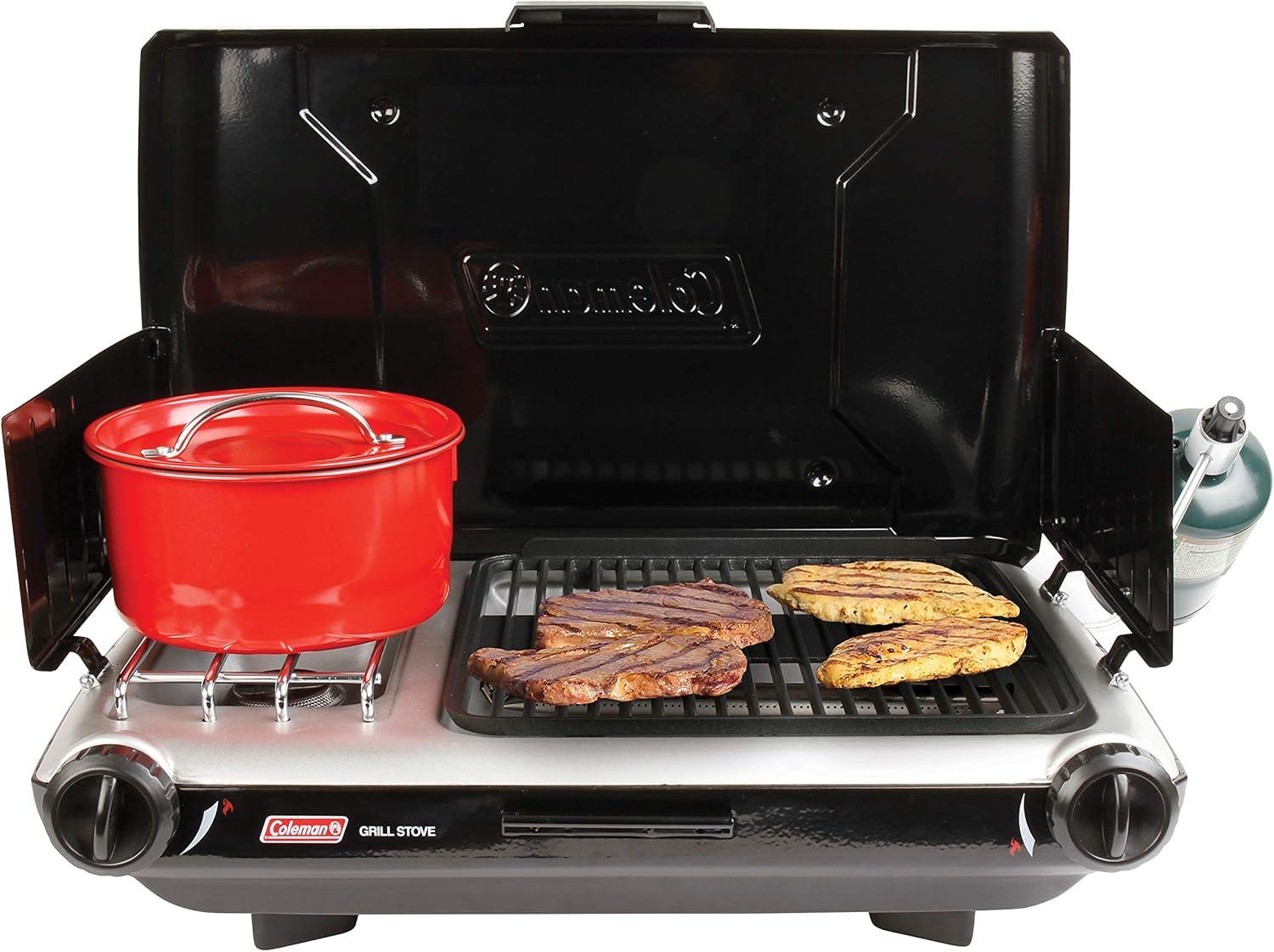 Channel your inner top chef with a grill and stove combo that lets you sauté veggies and grill chicken at the same time. The Coleman Tabletop Propane Gas Camping 2-in-1 Grill/Stove, 2-Burner is a crowd pleaser that has plenty of space to cook everyone's favorite outdoor meals with a stove surface that fits a 10-inch pan, and a 130-square-inch grill area. All of this in one compact design that sets up easily at the campsite, tailgate, or wherever the next outside adventure takes you.
