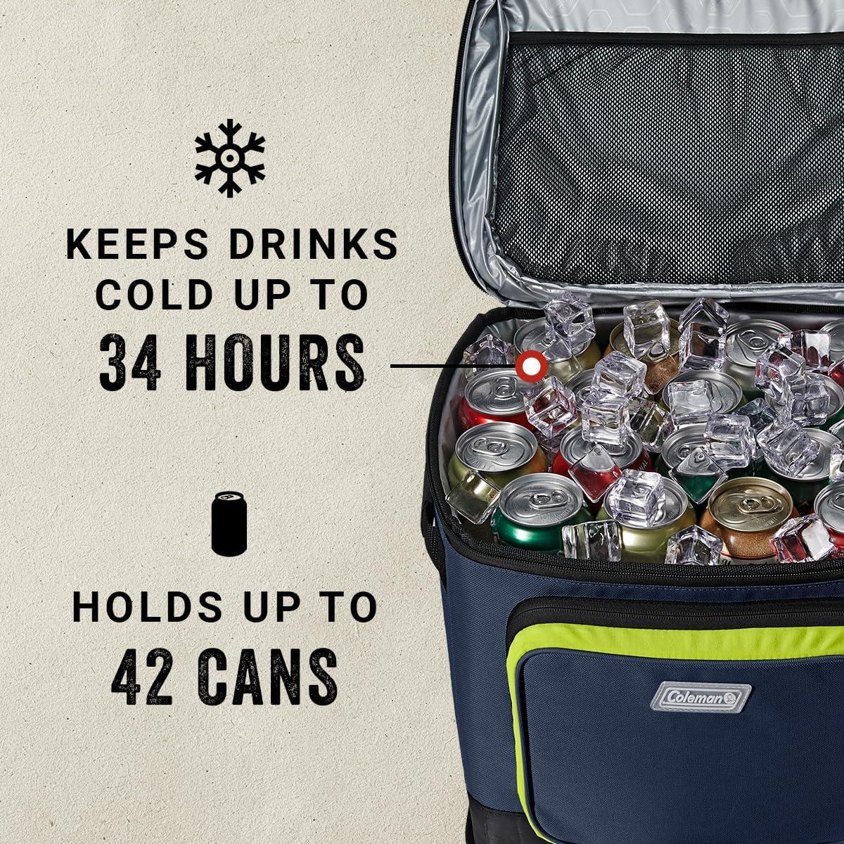 Coleman XPAND 16/30/42 Can Insulated Soft Cooler with Backpack & Wheeled Cooler Options, Portable Ice Chest Keeps Contents Cold up to 24 Hours(42-Can Wheeled)